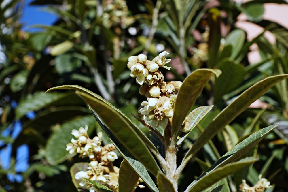 1月中旬にここを通ったら、ビワの白い花が咲いていた。