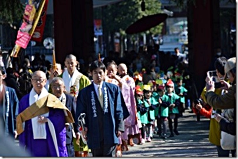 それに合図に寺の正面入り口から大僧正に続き、稚児行列が入って来た。