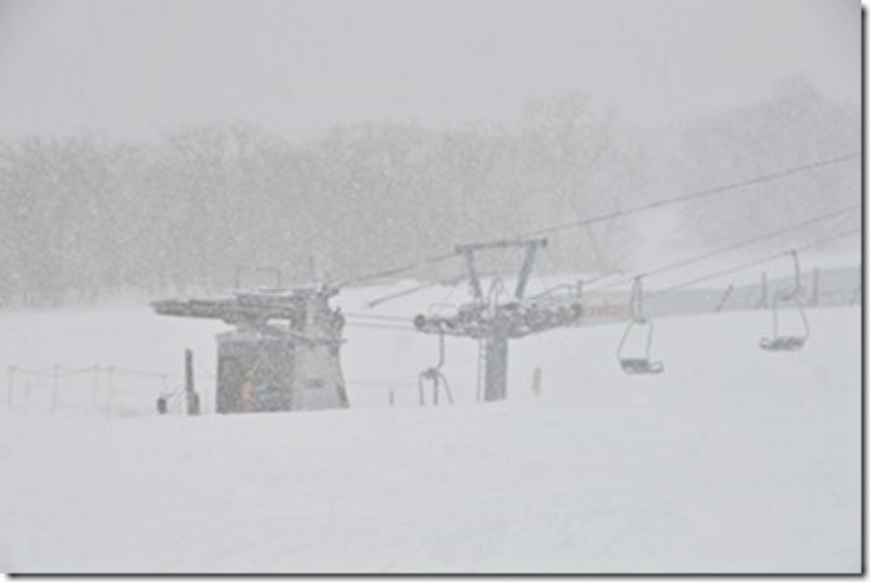 吹雪に霞んで見えるゲレンデにはお客もいないようで、リフトが寂しく回転していた。