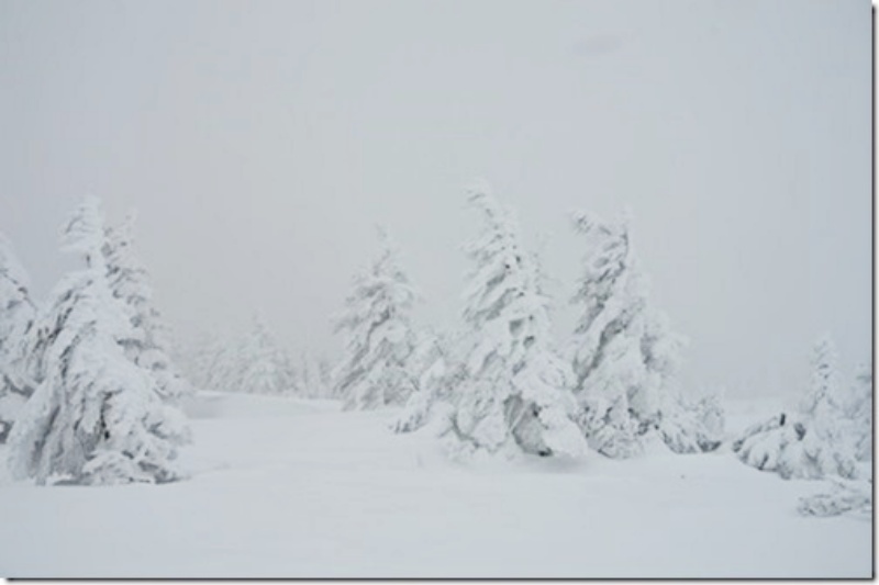 私が今までに見ている樹氷とは少し違い、枝と枝の間が透けて見えている。