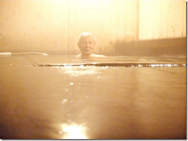 朝6時に温泉に入りに行ったら、掛け流しの温泉はお湯の温度が熱くて入れない。