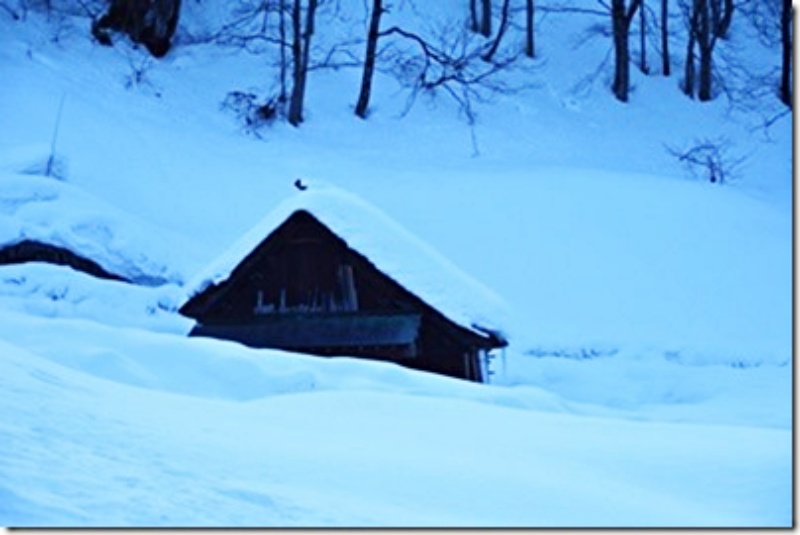 ここは限界集落で住んでいる人も少なく、村も予算の関係で除雪をした道路が一箇所しかなく何度も道に迷う。着いた時には午後5時半を廻り、茅葺集落は殆ど闇に霞んでいた。 そこから焦って東京に戻る。
