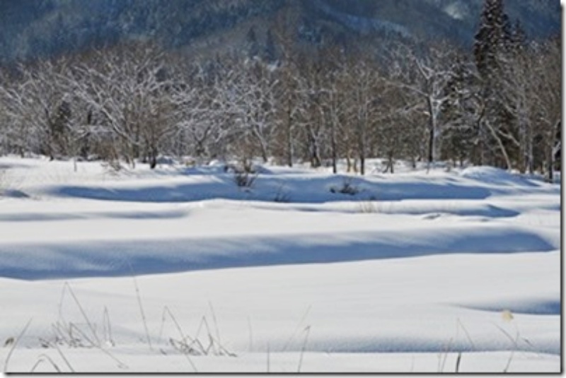 昔の回船問屋の山居の倉庫を見て、次は日本一の白鳥の飛来地であるスワンパークに向う。 時間によって1万羽はいるという白鳥は、残念ながらその日は見える範囲には居なかった。 仕方ないので、最後の予定である朝日村の茅葺集落に行く。