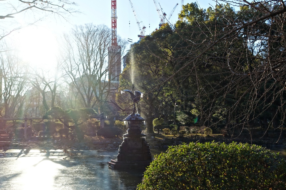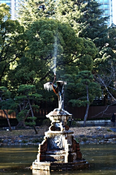 そこで20日に日比谷公園の「鶴の噴水」が凍ったのではないかと思い、午前9時頃に様子を見に行った。家を出ると顔が冷たい。こんなことは都内では滅多に無いことだ。