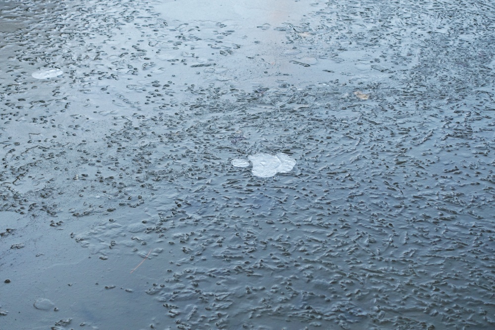 前日夕方のTVニュースで、1月23日の最低気温が「マイナス1℃」と報道されていたので、改めて出掛けて行った。午前7時少し過ぎに家を出る時にかなり寒かったので、凍結は期待できそうだと思った。真っ直ぐに「鶴の噴水」のある池に向かった。