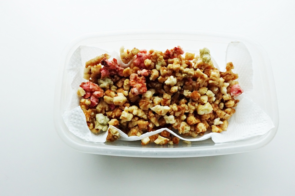 赤と白の揚げ餅になっていたが、つまんで食べたらとても美味しかった。