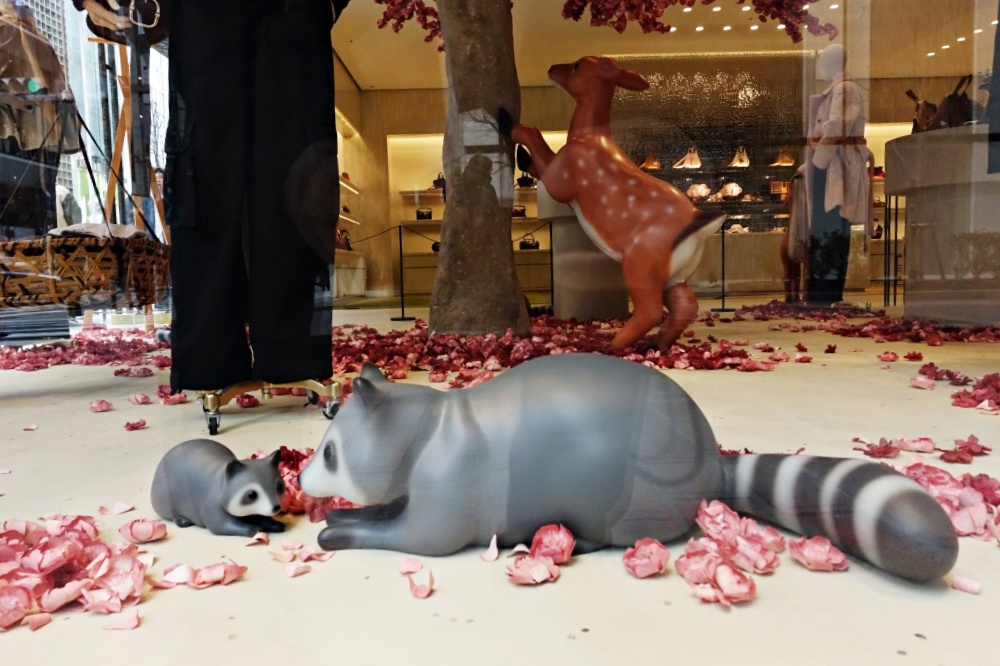 「FANCL」の少し先のショーウィンドーに、動物がいるのでビックリした。