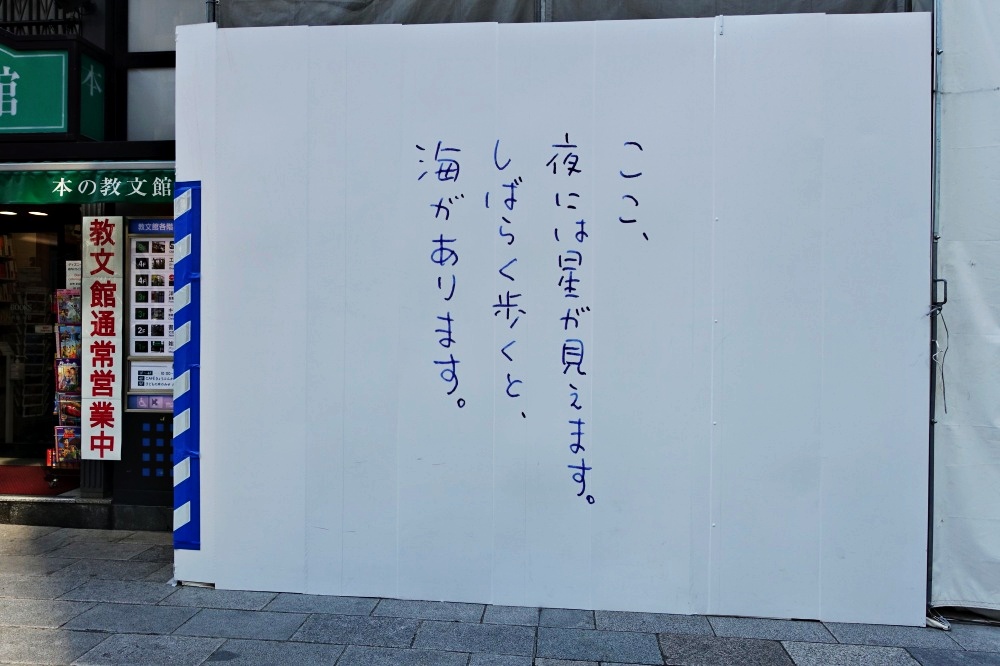 私だけではないと思うが、『以前はどんな店だったかな?』と、無くなるとすぐに忘れてしまう。最近は仮囲いに「アート」を描くのが流行しているのに、ここは文字だけだ。