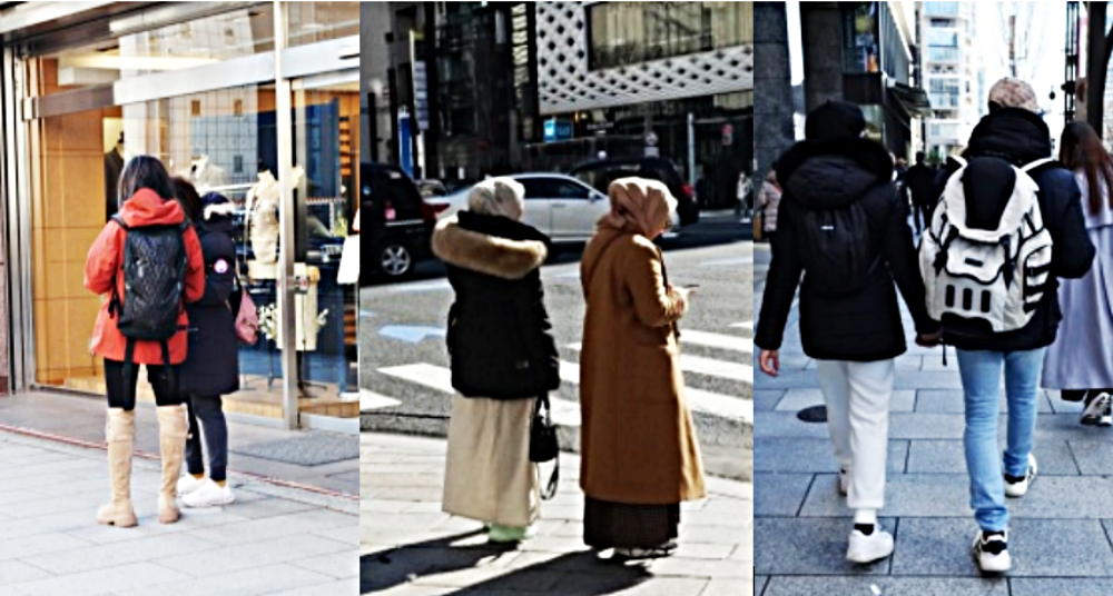 イスラム教の国から来ている女性はヒジャブを被り、夏は暑いだろうが、冬は暖かいだろうと思う。たまに着物でヒジャブでスニーカーという、なんとも奇妙な女性もいる。