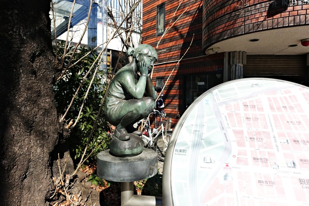銀座の「像」の3体目である。数寄屋場所交差点に角に交番がある。