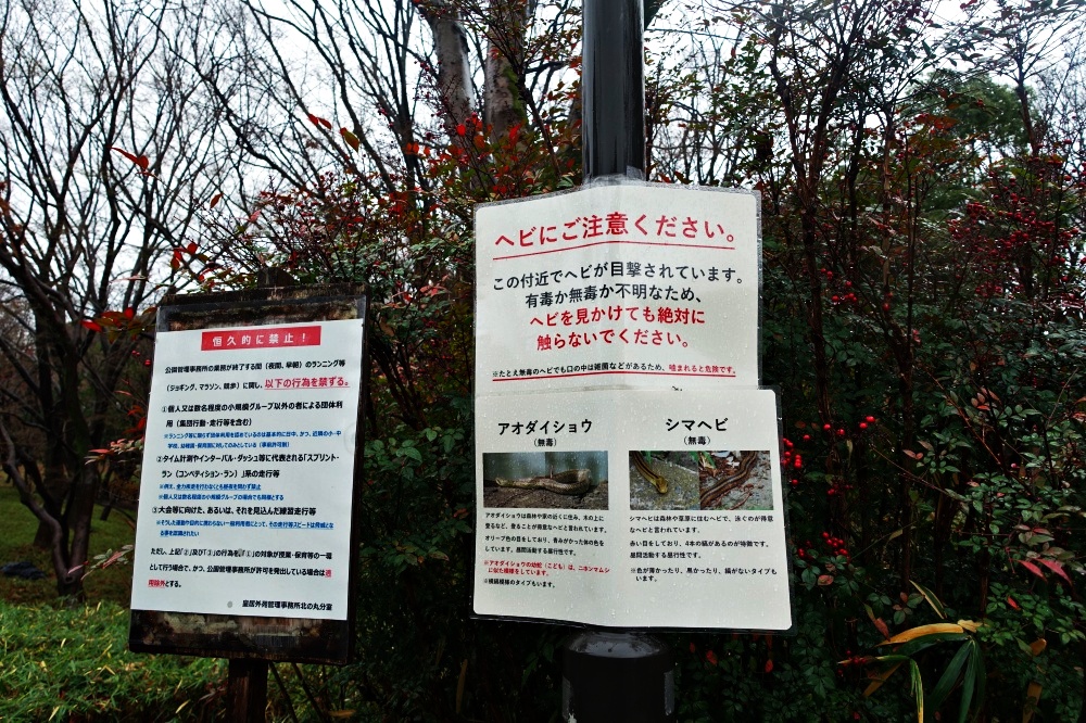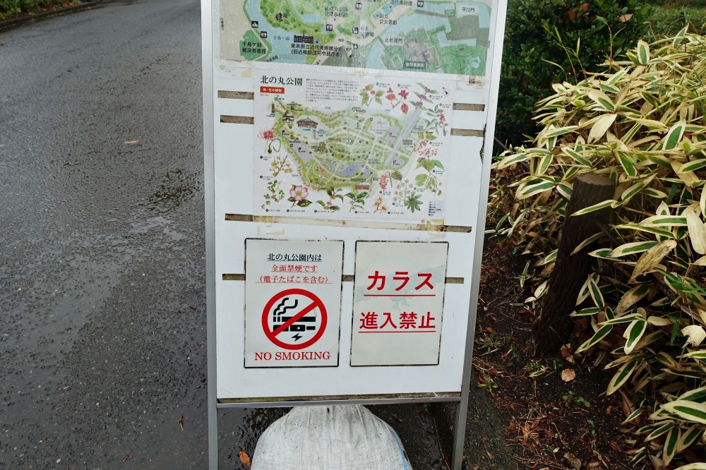 北の丸公園に入ると、色々な「ご注意」の看板が立っている。