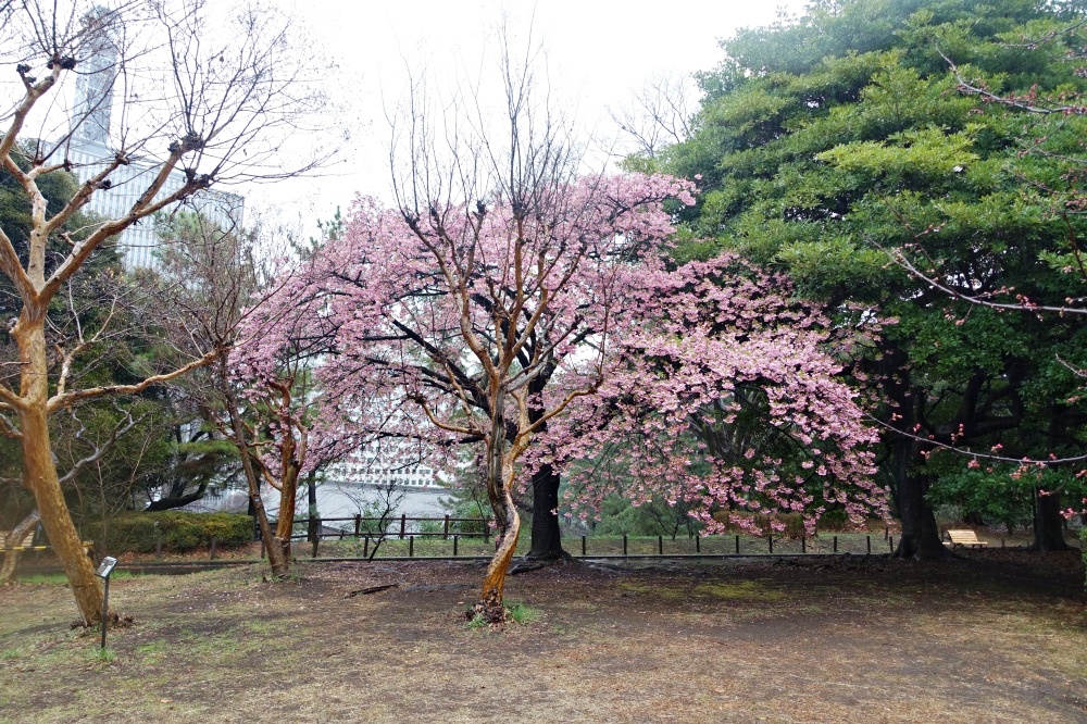 少し開けた場所に4本の「河津桜」の木があり、その内の1本だけが満開だった。