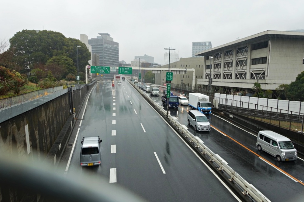 北の丸公園の出口に門は無く、下を通る首都高速道路の上を歩くと外に出る。