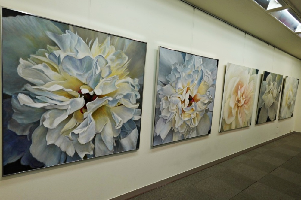 会場には3面の壁に、50号くらいの大きなアップの花の絵が飾ってあった。