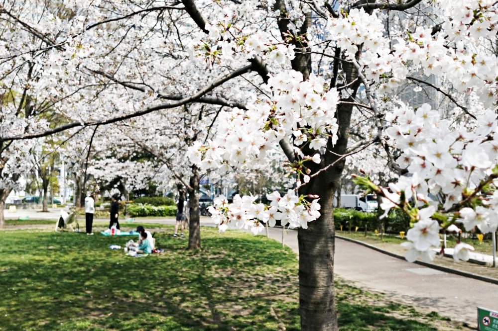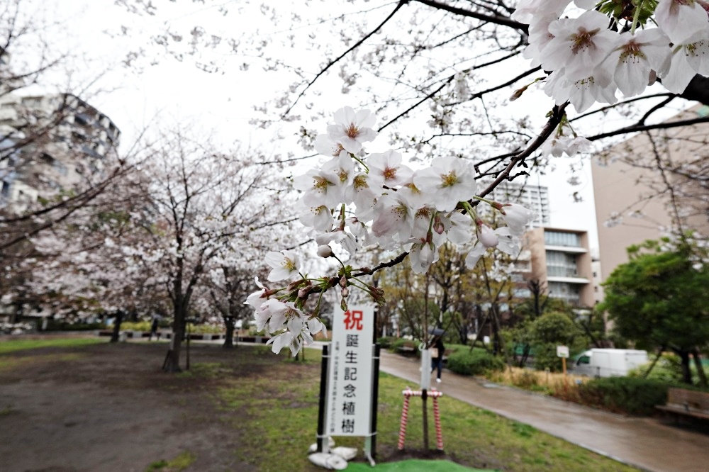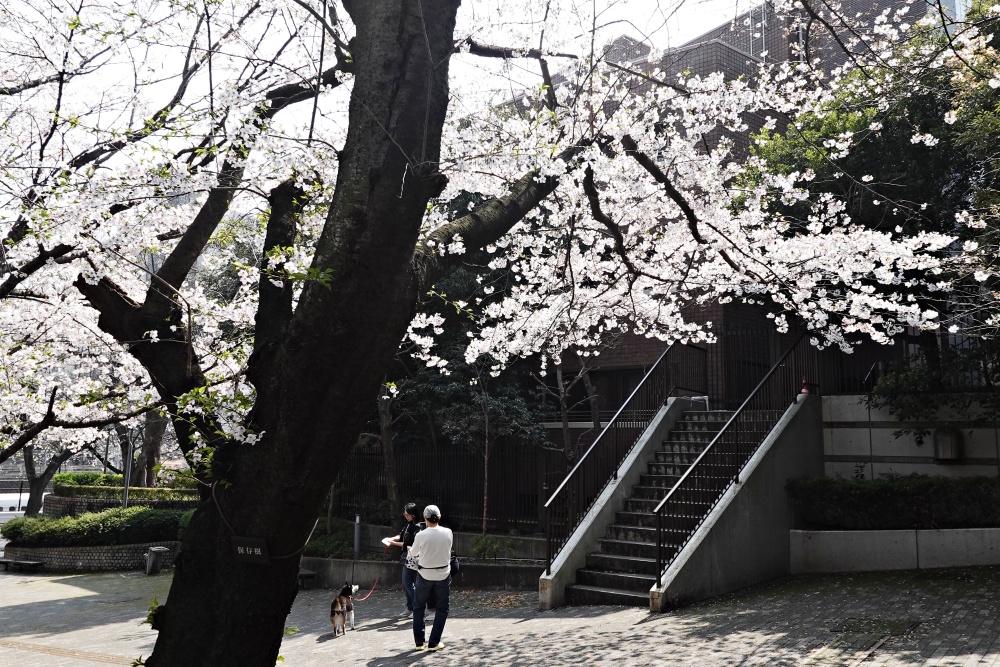 中央区には多くの桜の咲く公園があるが、その中から近場の公園の桜を見に行った。