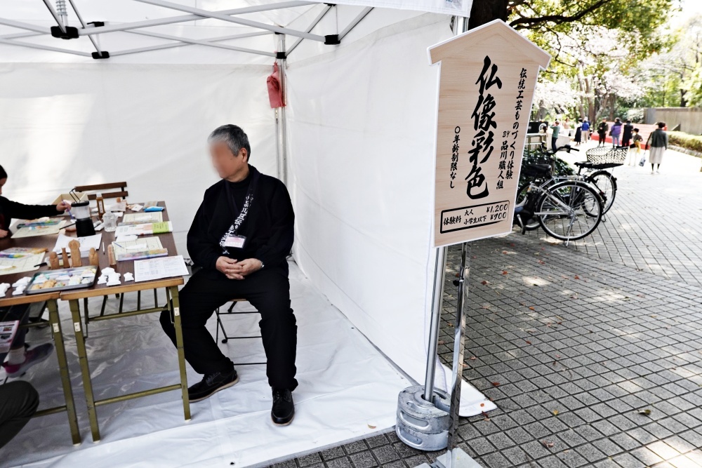 そのすぐ先が「さくらまつり」の会場で、仏師の「榎本 宣道師」は子供相手に絵付けの指導をしている最中だった。