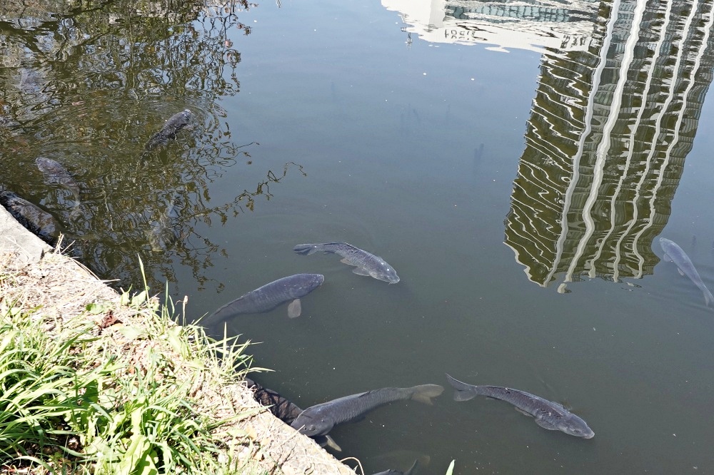 不忍池から「ボート池」に向かうと、途中で水面を見たら鯉が近寄って来た。