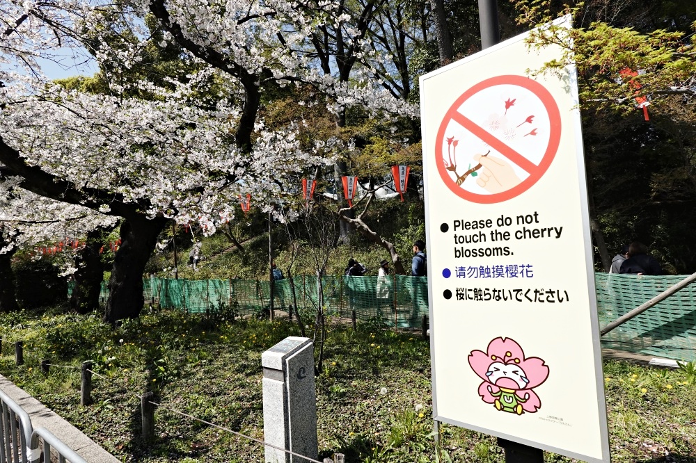 そのために英語、中国語、日本語の順で「桜に触らないでください」と書いた大きな看板が立ててある。日本人は子供の頃から「桜の花に触っちゃダメ」と教えられて育っているので、看板の注意の順番も最後なんだろうと私は思っている。