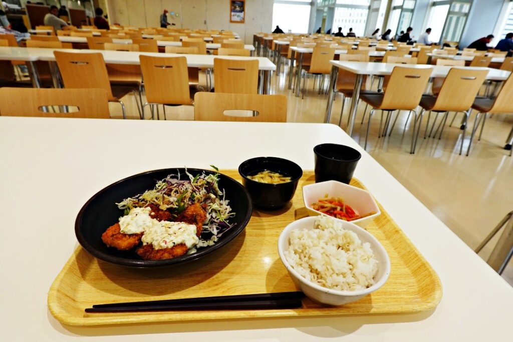 出て来た食券に「6番カウンター」と書いてあるので、そこへ行ったら洋食コーナーだった。「え~!」と思ったが、もうどうしようもない。お盆に洋食を乗せて席に着いた。