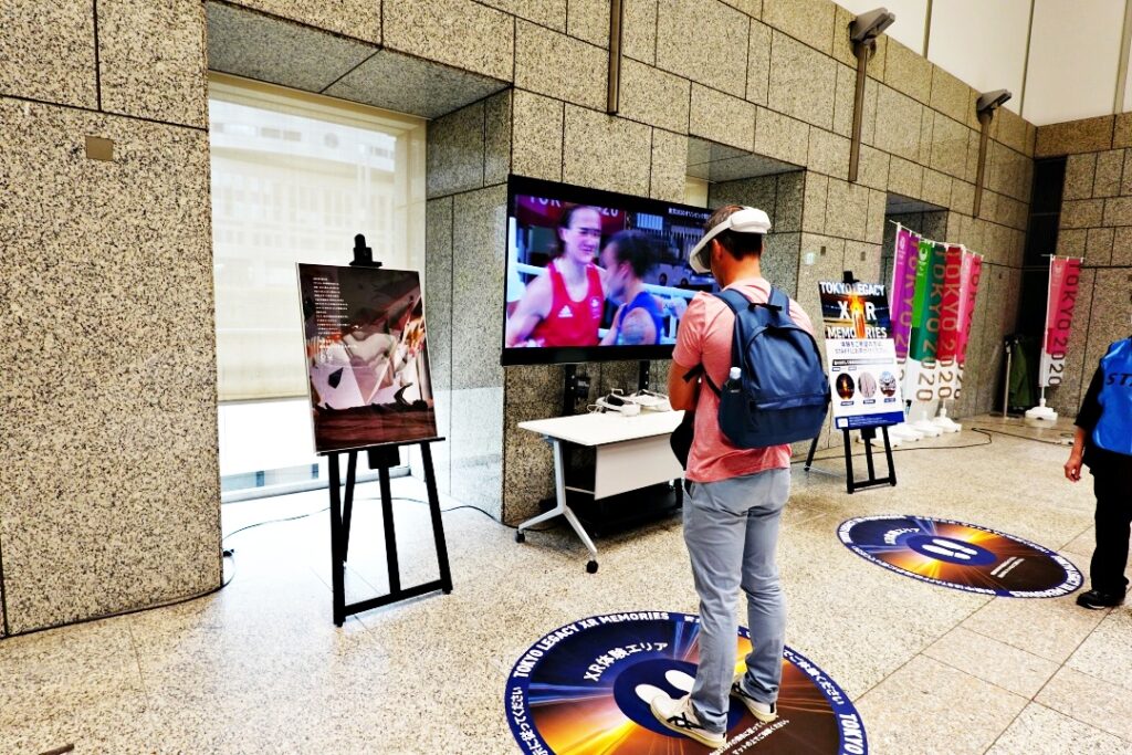 『東京2020大会のスポーツクライミングウォールを再現し、競技空間のスケール感の中で、アスリートの「高さ」や「速さ」と言った迫力を体験できるXR「TOKYO LEGACY XR MEMORIES」をはじめ、「バーチャル江戸マラソン」など体験型コンテンツを多数展開します』とあった。