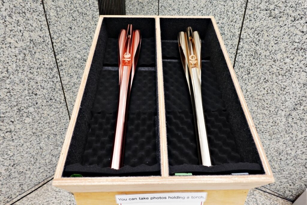 会場には2本の聖火トーチが置かれていて、手に持つことも出来る。