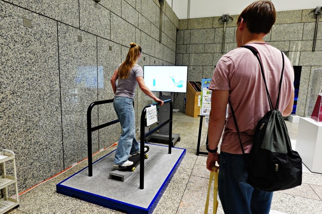 会場では前にある画面に合わせてスケボーを操るようだ。