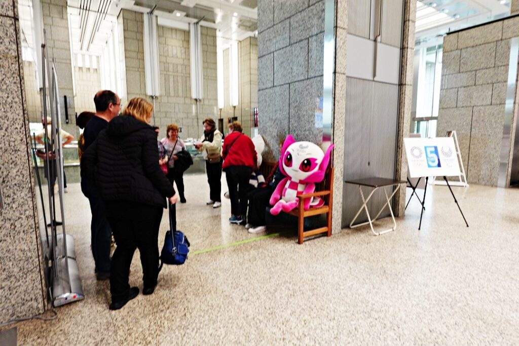 そこには東京オリンピック2020の時のキャラクターの「ミライトワ」と「ソメティ」が置いてあり、その間に坐ると記念撮影が出来るようになっていた。