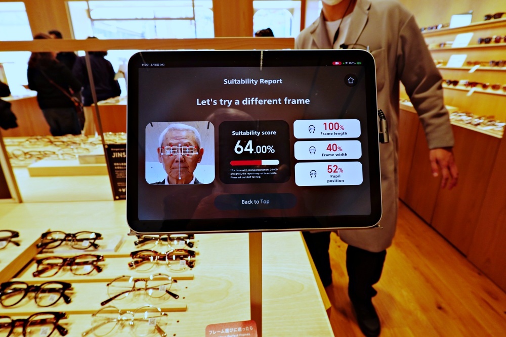 しかしどこにも日本語が書いてない。眼鏡をかけて画面の前に立つと、「似合うかどうか?」を判定してくれる機械があった。