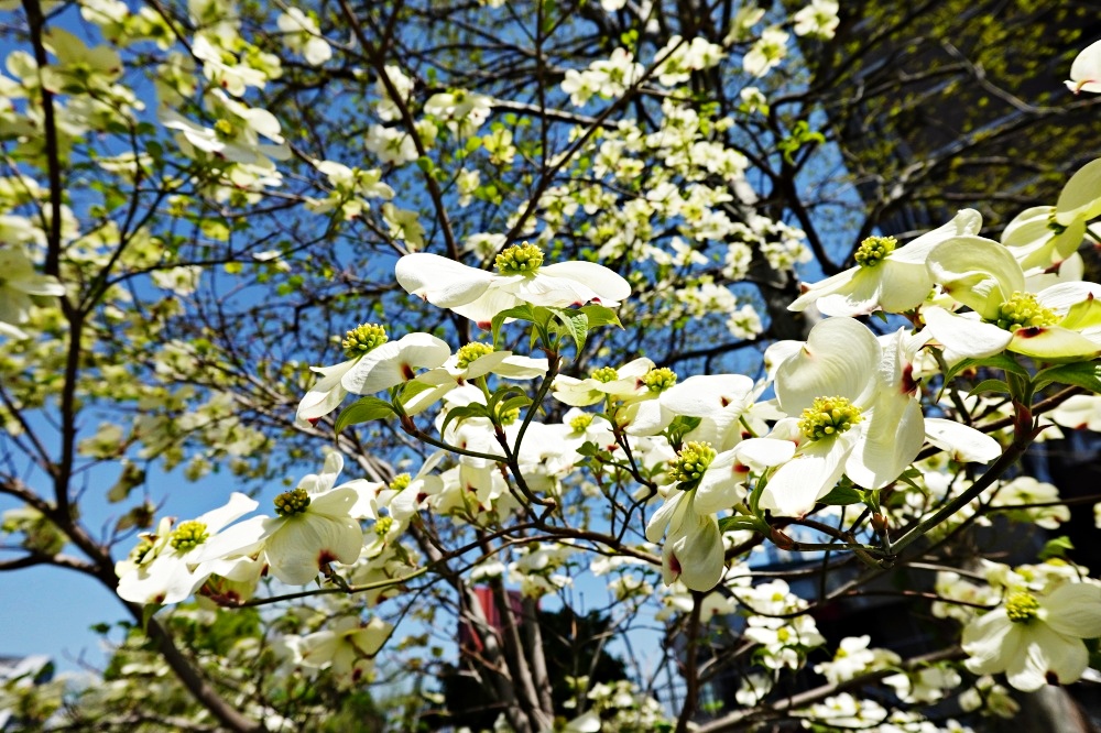 これは「花水木」(はなみずき)で、「春だなー。初夏が近い」と感じさせる。