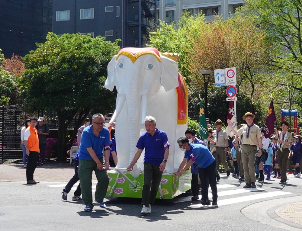 「はなまつり」には、毎年大きな「白い象」が登場する。