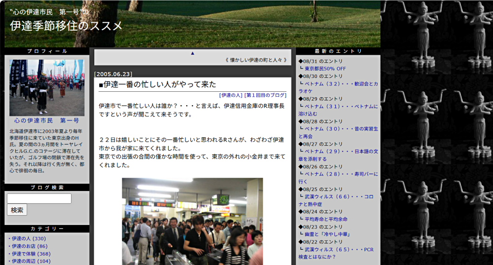 北海道伊達市に2003年夏より毎年季節移住に来ていた東京出身のH氏。夏の間の3ヵ月間をトーヤレイクヒルG.C.のコテージに滞在していたが、ゴルフ場の閉鎖で滞在先を失う。それ以降は行く先が無く、都心で徘徊の毎日。