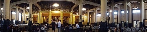 築地本願寺の本堂のパノラマ写真