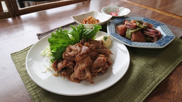 たまには、薄切り肉の生姜焼きも美味しいです。