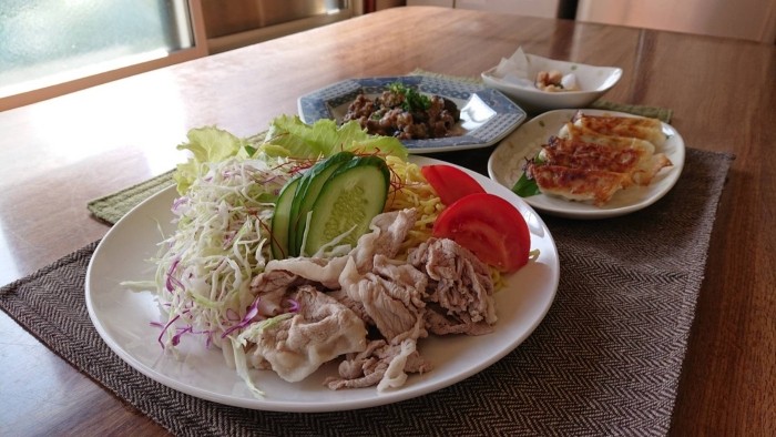 国産豚もも薄切りを茹でておか揚げしたものです。