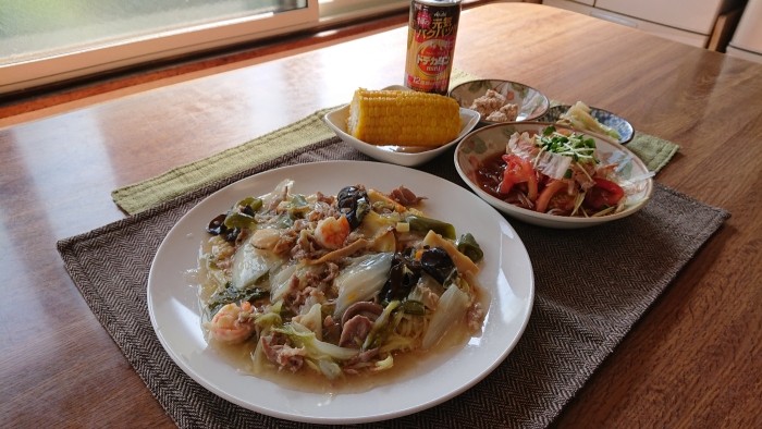 今日のメインは塩あんかけ焼きそばです!