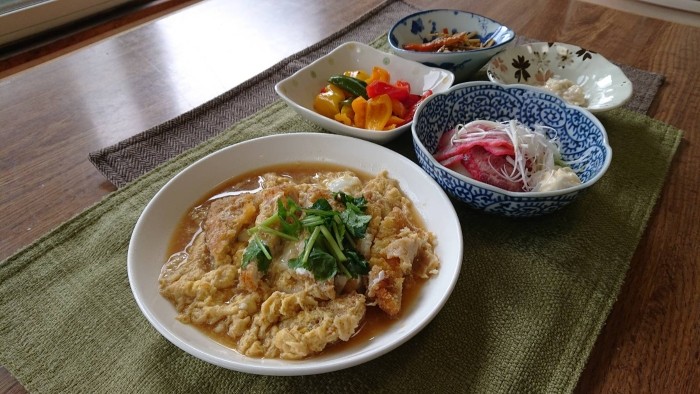 玉葱たっぷりのかつとじは甘辛の煮汁が