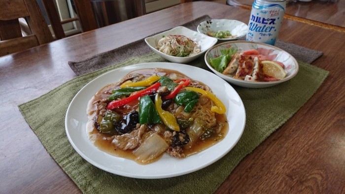 本日のメインは具沢山の特製醤油あんかけ焼きそばです。