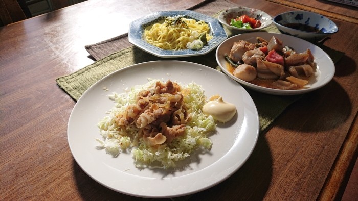 今日のメインは豚バラ肉と玉葱の生姜焼き