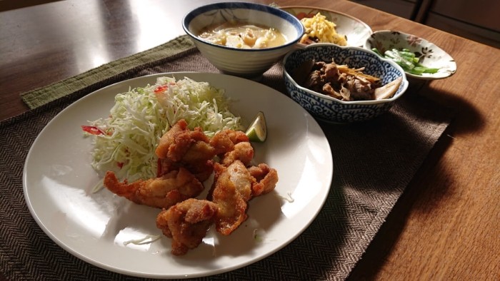 今日のメインは国産鶏モモ肉の唐揚げです!