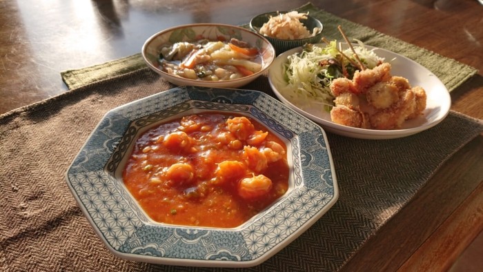 ピリカラなエビチリはお酒のおつまみにピッタリです