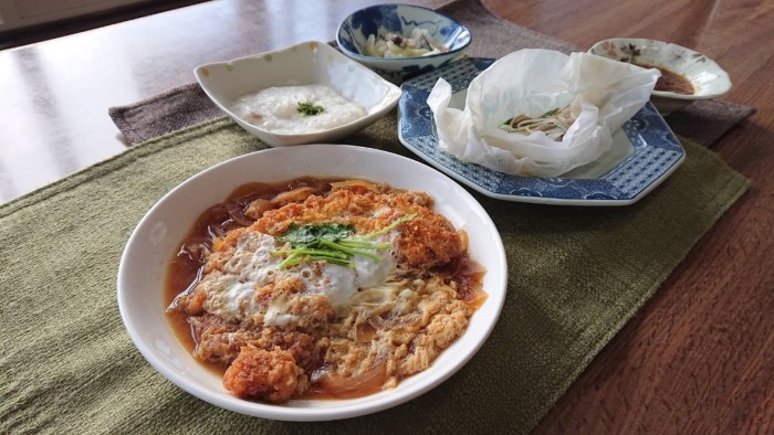 豚ロースをたっぷりの煮汁と卵でとじました。