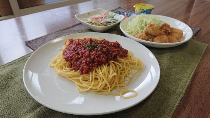 季節に合わせて濃厚な味わいのミートソーススパゲティです