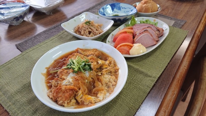 今日のメインは特製かつとじです!