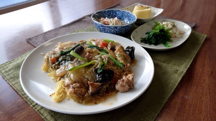 具がたっぷり入った醤油味のあんかけ焼きそばです。