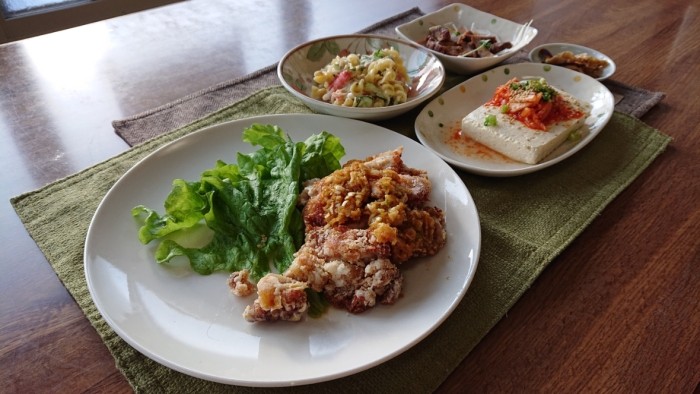 キムチ豆腐は木綿豆腐に韓国産の辛口キムチを