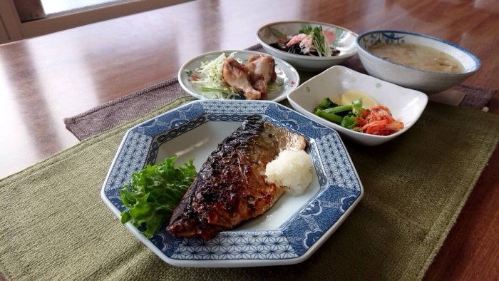 食欲をそそります。大根おろしを添えているのでお好みでどうぞ。