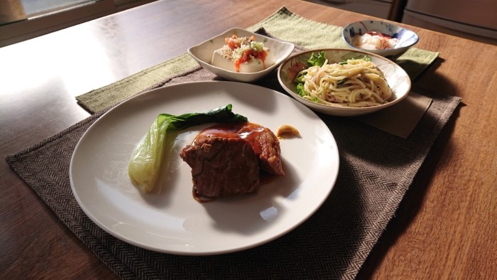 今日のメインはボリューム満点な豚の角煮です!
