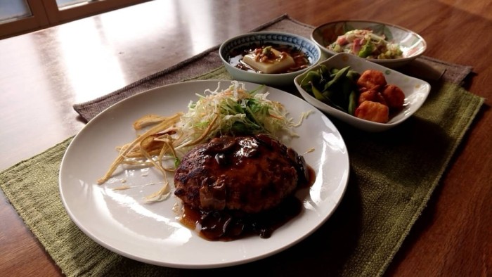 炒め玉葱をたっぷり入れて肉種を作りました。和風ハンバーグなので