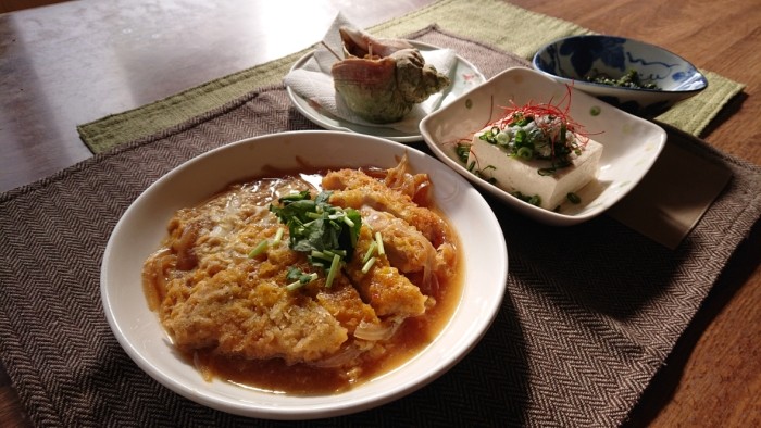 今日のメインは特製かつとじです!