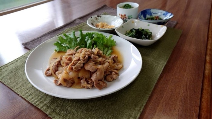 ☆本日のメインは豚バラと新玉葱の生姜焼きです☆